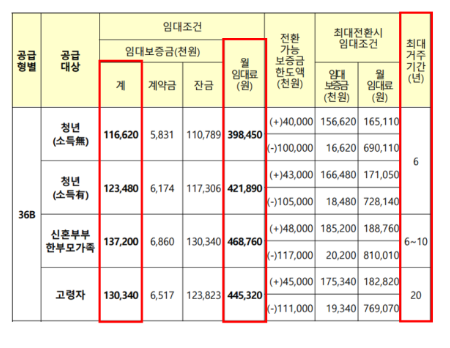 (예비)신혼부부, 한부모가족은 최대 거주가능 기간이 6~10년