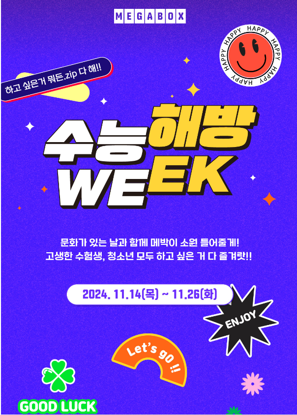 11월14일부터 26일까지 수능해방위크 "하고 싶은거 뭐든 ZIP 다해"를 진행합니다.