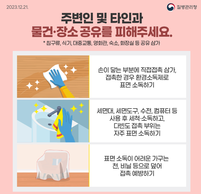 - 오염된 물체 접촉: 감염된 사람의 물건이나 환경에 접촉함으로써 전파될 수 있습니다.