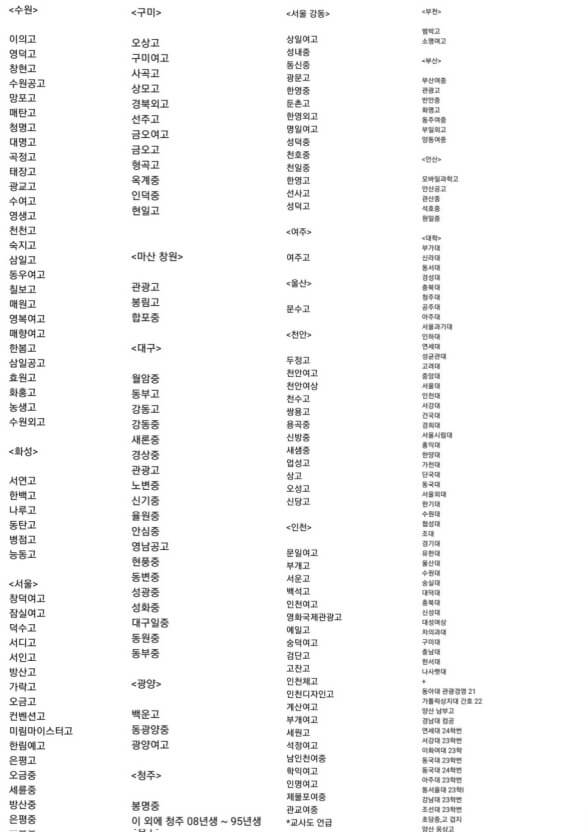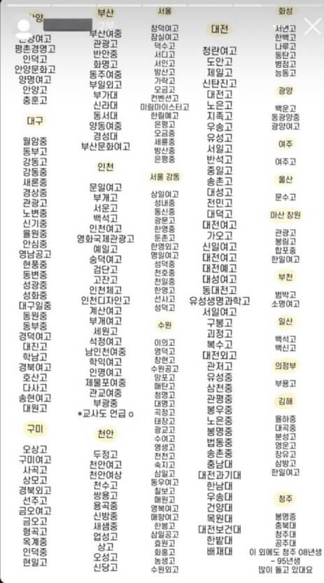 피해자가 대학생외에도 중고등학생 어린 10대들이 포함된 사실이 밝혀져 더 충격을 주고 있는데요 특정 학교에서만 발생하는 것이 아닌 서울, 부산, 인천, 대구, 대전, 광주, 부산, 울산 등 전국 각지의 중 고교에서 피해자들이 발생하면서 경각심이 더 커져가고 있습니다.