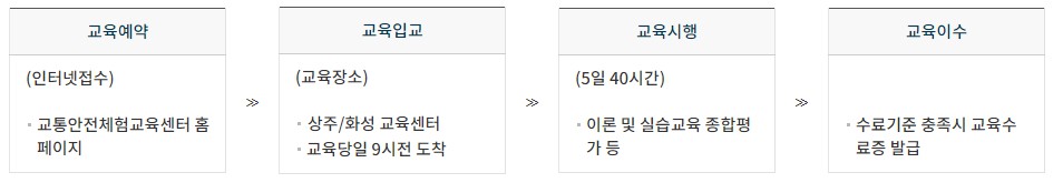 ★ 교육을 이수하고, 1년 이내에 개인택시 운송사업 면허를 양수하여야 하며, 교육이수 후 1년이 경과하고 개인택시운송사업 면허를 양수하려는 경우에는 다시 교육을 이수하여야 합니다.
