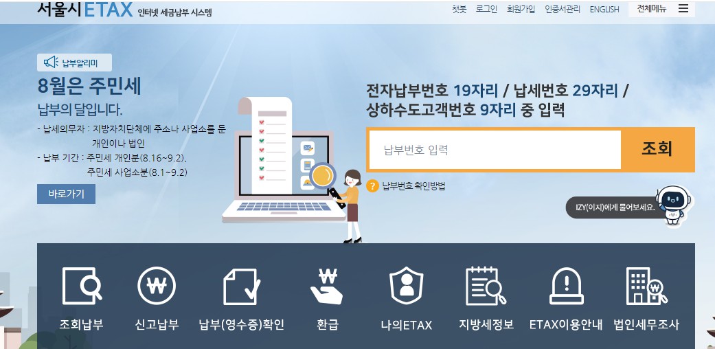 서울시는 서울시이택스(etax.seoul.go.kr) ,은행의 CD/ATM, 계좌이체, ARS로 납부가능하며